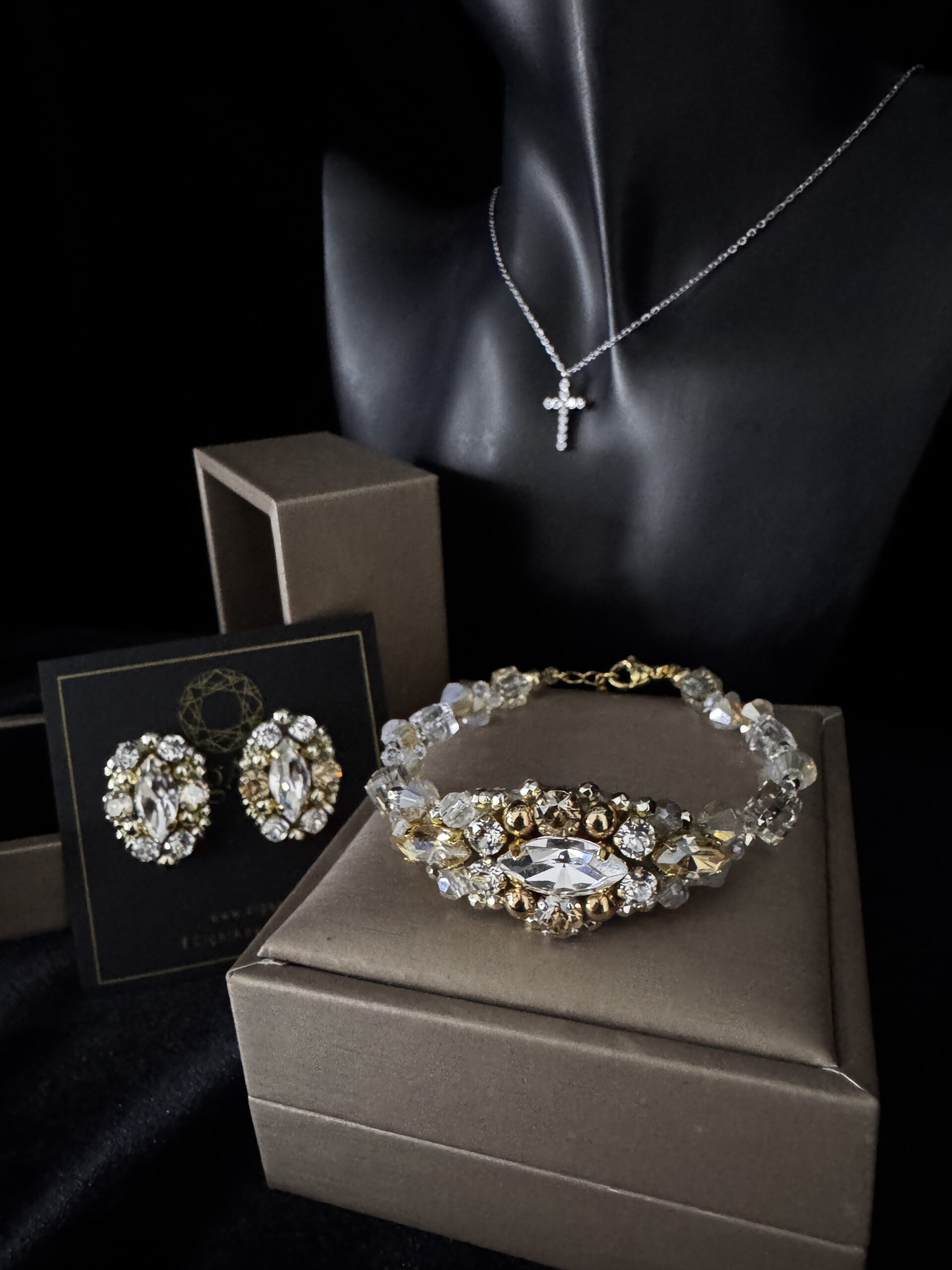 • Aukštos kokybės kristalai (Swarovski, Primera, Preciosa, Aurea)