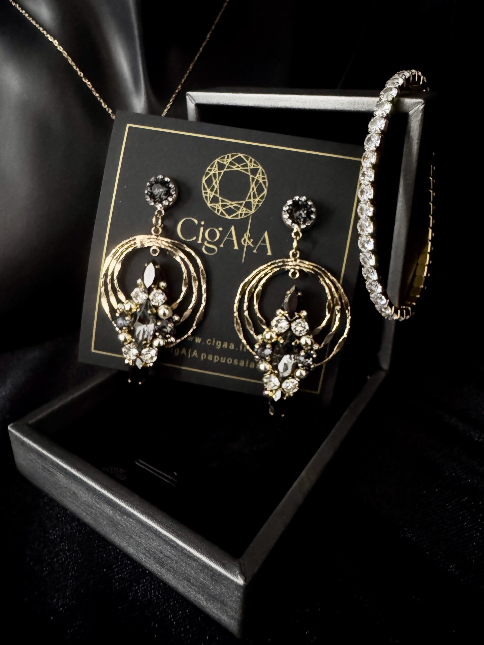 Auskarai „Prieblanda“ – subtilios prabangos ir paslapties derinys.