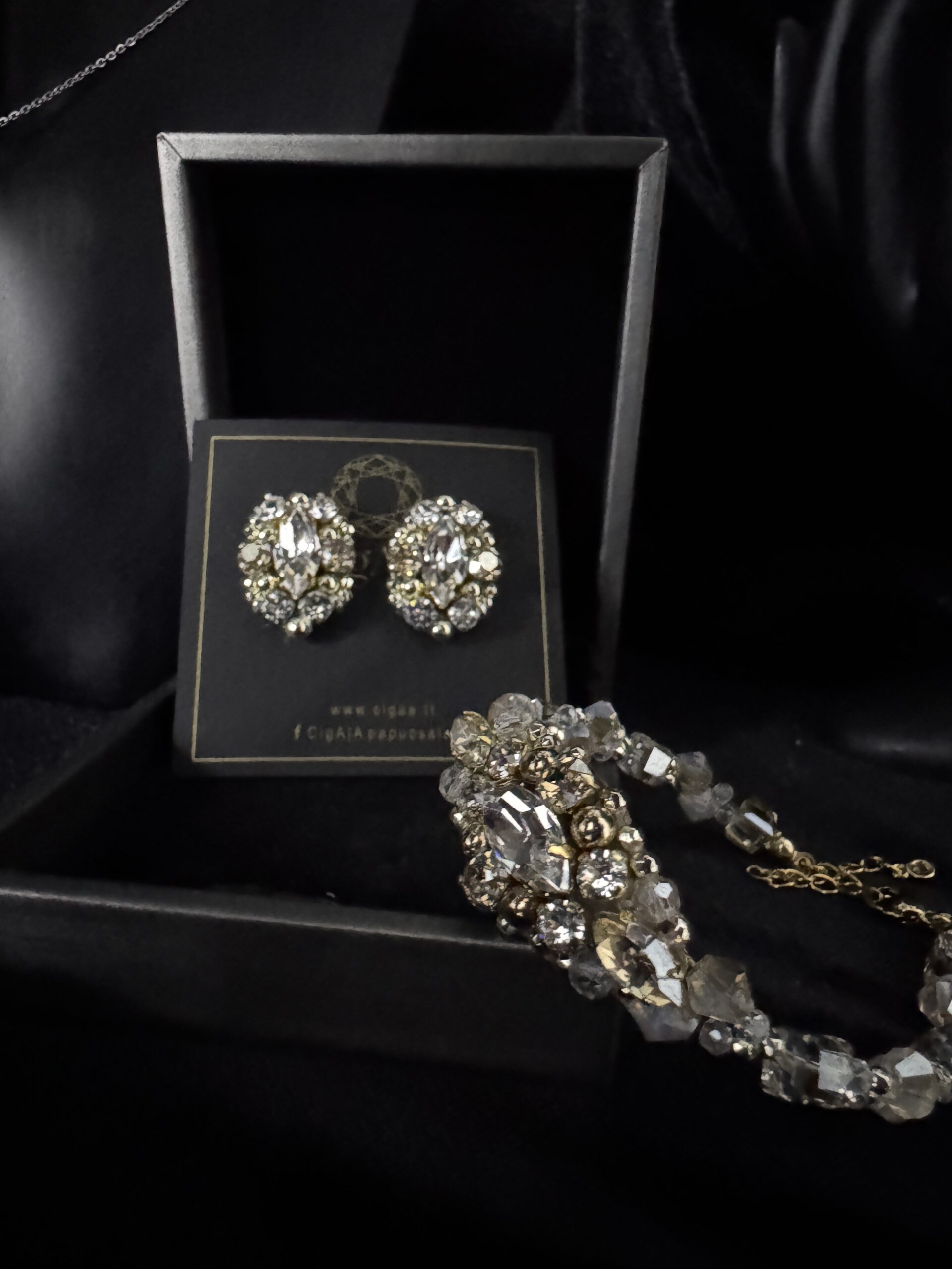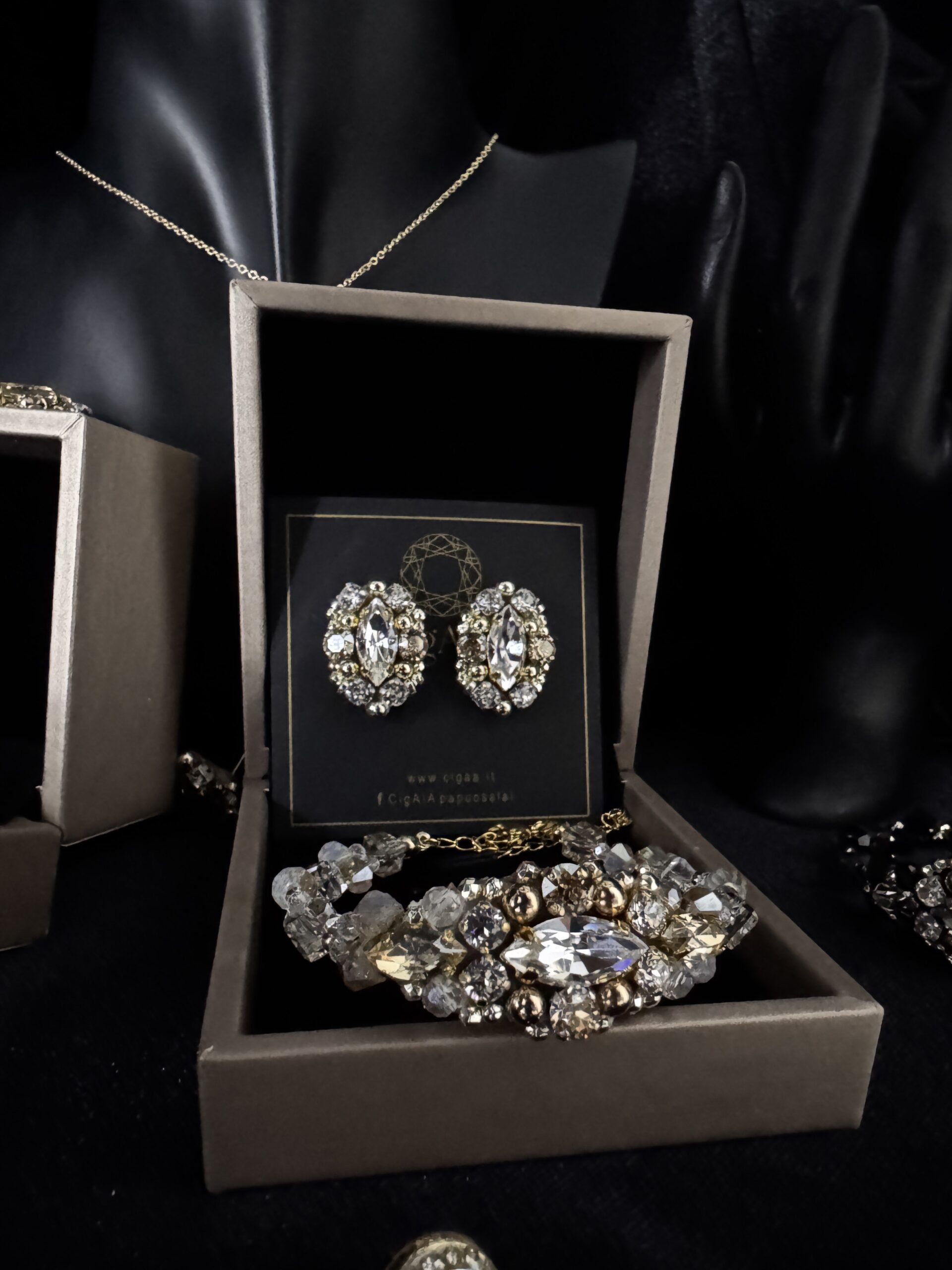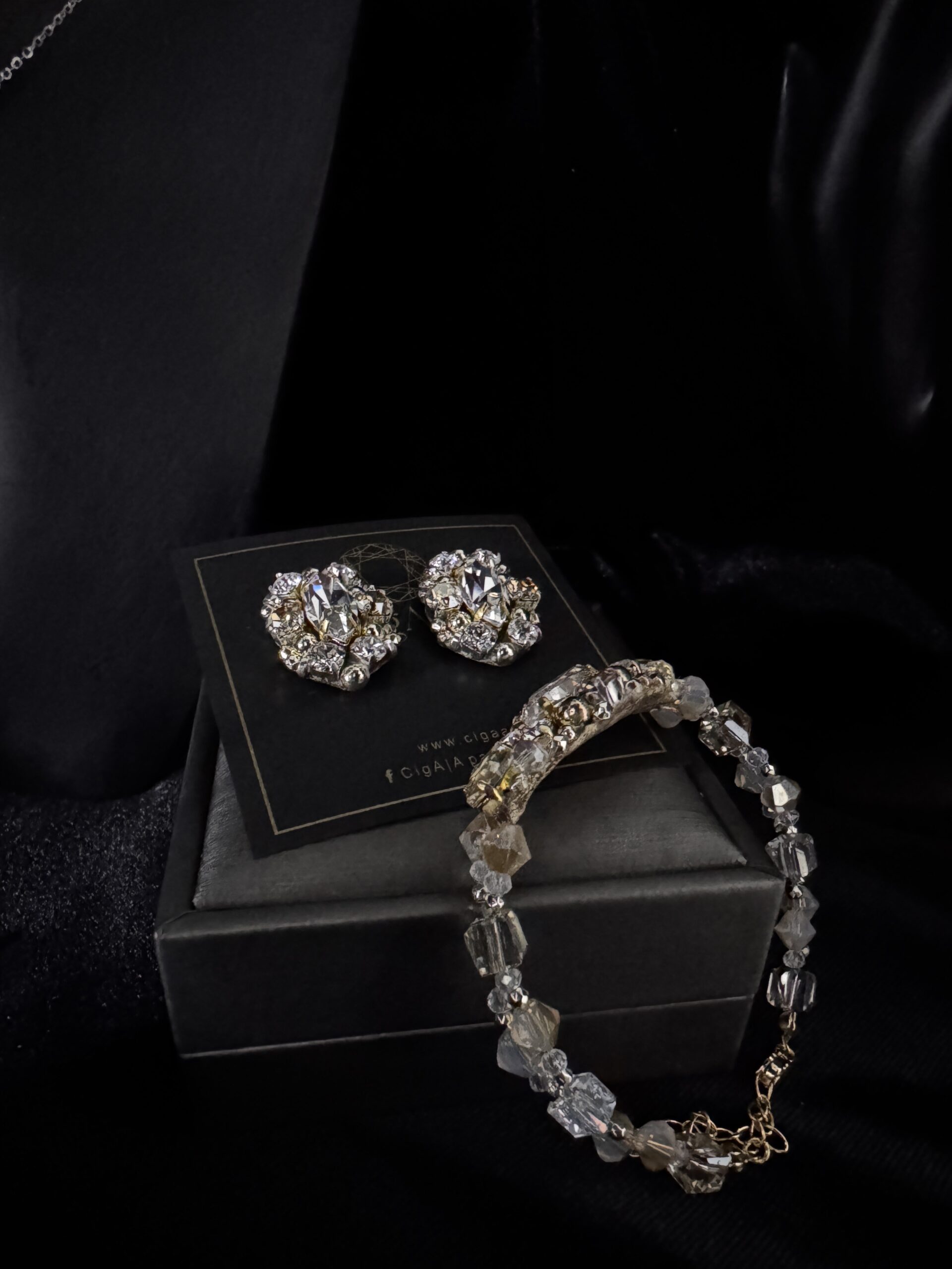 Auskarai ir apyrankė subtiliai papildo vienas kitą, sukurdami harmoningą ir elegantišką įvaizdį Jūsų ypatingai progai.
